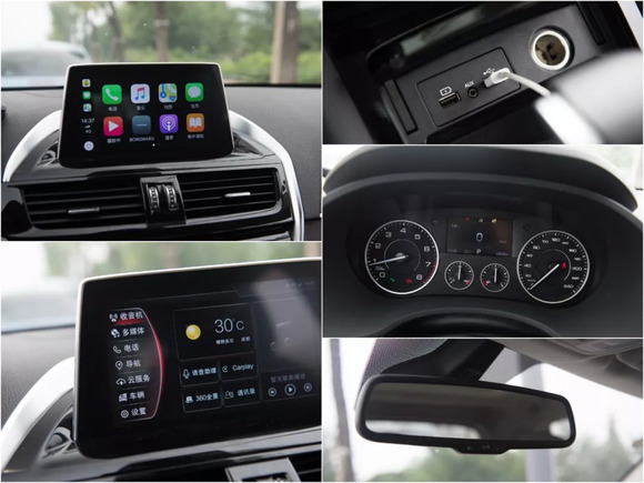 此外BX5在仪表盘上有彩色行车电脑显示屏和更大尺寸的中控液晶屏,它和探歌的人机交互系统都有CarPlay,但宝沃出品多出了车联网、导航和道路救援等功能,体现它更具科技感的一面——甚至就连USB接口,BX5也比大众SUV多一个。