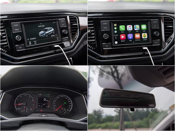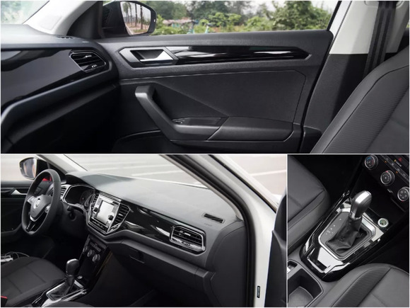 相比而言,大众探歌在内饰材质上就更令人失望了。也许是本身定位的关系,探歌的车内仅有门板在手肘位置布置了一块皮革包裹的海绵材质,其它能触及的地方基本都以生硬的塑料件铺成,只能说纹路还隐约有点高级。我们购买的舒适版使用黑色钢琴漆装饰,没有顶配型号的彩色饰条活跃,而且从使用来看也比较容易被划伤。