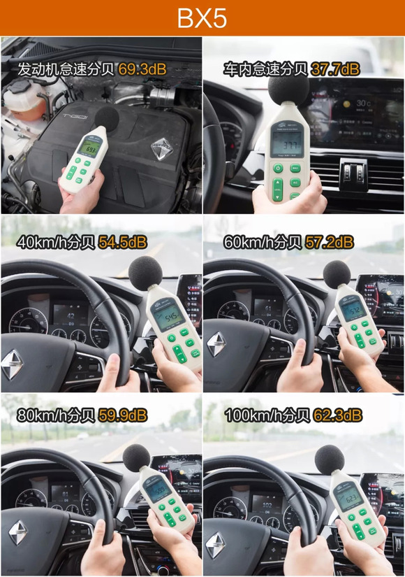 从具体的数值上看,BX5和探歌差距最大的时刻是发动机本体怠速,虽然都是直喷发动机,但大众引擎运转时的噪音明显高于宝沃出品。在进入车内后,经过隔绝处理的发动机噪音差异明显缩小,但BX5依旧留有优势。