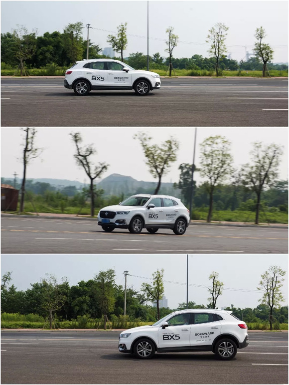 但在全力制动时,BX5刹车初段乏力的不足被完全掩盖,能感觉到车头下压的幅度虽然不夸张,但整个制动效率却十分积极,只是因为场地原因,在刹停的末段时轮胎有点抓不住地,带来一定的滑动。最终宝沃BX5在3.1秒完成100kph到静止,考虑到天气较热,40.84米的制动距离也在优秀的水准线。