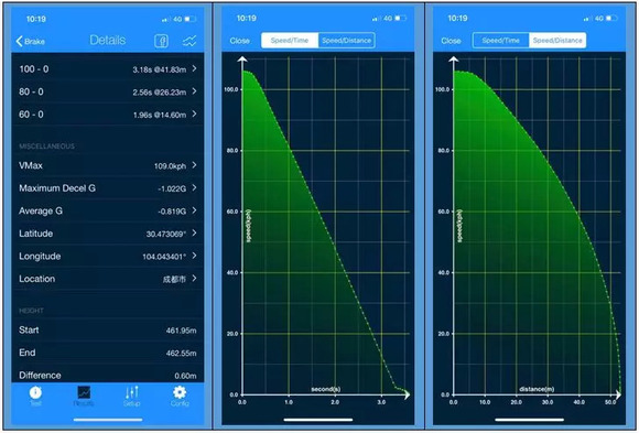 在制动测试上,我们依旧保持电子安全辅助设备全部开启,以D挡逐渐加速到105kph左右后全力制动,从而获得100、80、60-0kph的数据。