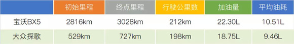 单从行车成本上来看,BX5的发动机只需要使用价格更低的92号汽油,在这次的测试中每公里开销是0.78元。由于大众发动机限制使用95号汽油,所以探歌的每公里燃油成本要0.76元,这么来看两者的日常用车开销差异不会太大。