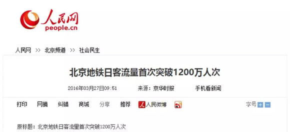 实际上北京地铁1天客流量就超过春运期间全国火车站总和(759万)。北京年运量36.6亿,一年365天,假设一天1000万人,一年运量正好是是36.5亿人次。每天在地下奔波的步履匆匆的年轻人,只不过是1000万分之一。