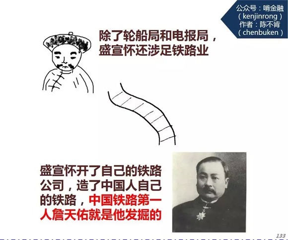 盛宣怀广泛涉足铁路、煤矿、钢铁、银行、通信等工商行业,甚至还开办了中国第一所民办大学,堪称中国近代工商业之父。
