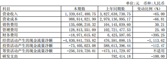 销售下滑 经营现金流下降1113%