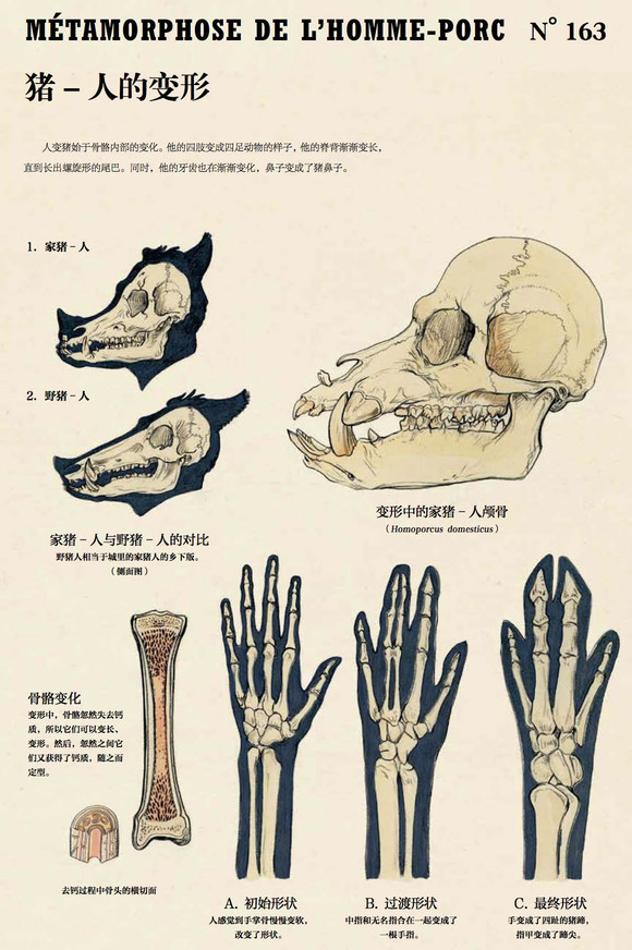 在《超自然变形动物图鉴》一书中,让-巴普蒂斯特·德·帕纳菲厄发笔端游弋于科学与想象之间,对经历变形的惊人生物进行了深入探究。青蛙王子、月桂女神、蛇女、狼人、吸血鬼、半人马甚至天使……作者从神话、史诗、小说、电影以及真实自然中汲取灵感,构建了关于超自然变形生物的百科全书。借助艺术家卡米耶·让维萨德的充满想象与典故的生物插画,栩栩如生地展现了变形物种的每一个变化阶段。经出版社授权,界面文化(ID:Booksandfun)从中节选了引言的部分内容以及有关人变形为猪的章节,以期与读者一同开启一场脑洞大开的想象力之旅。