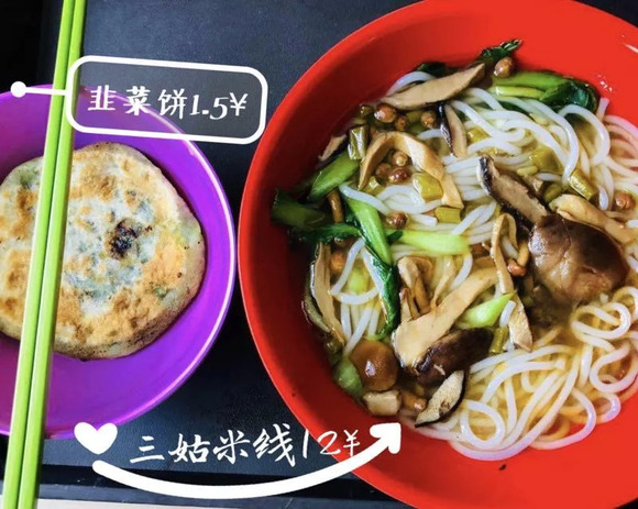 你看这个碗,它又大又圆,就像这碗粉,它便宜又甜~