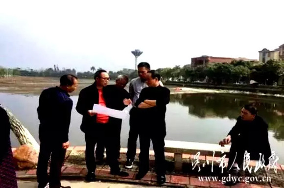 京基陈华(左2)亲自拍板,为家乡蛤岭村改造“十里荷塘”