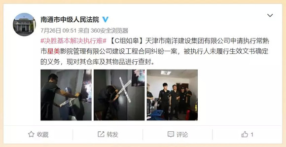 (@南通市中级人民法院微博截图)