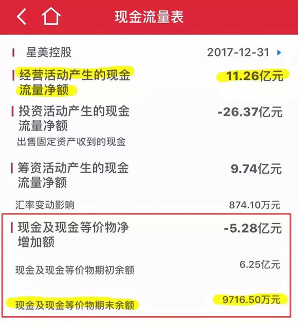 2017年星美净利-1.29亿元。其次,现金流很紧张,星美控股市值数十亿港币,但期末现金余额为9716.5万港元,约合人民币7000多万元,如何维持365家影院的经营和后续的扩张?