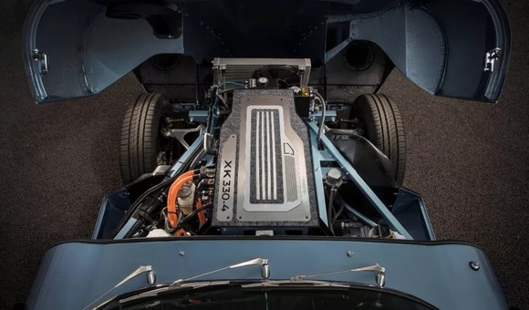 甚至制造方式都是传统的纯手工,以向初代E-Type致敬。光从外观看,你完全看不出什么不同,但掀开发动机盖,会发现内燃机变成了电机。