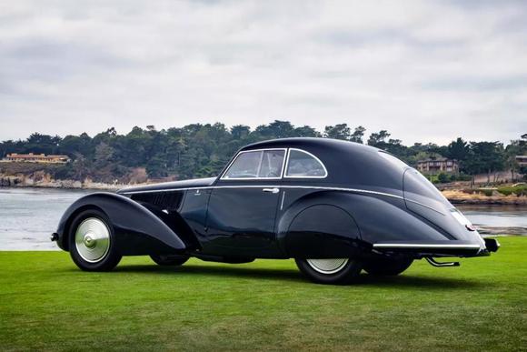 他选择巴黎知名车身厂 - 费高尼-法拉斯奇为他的爱车设计和制造车身,从而诞生了这款独一无二的融合了后古典主义时期流行的装饰艺术“泪滴”形态、战后浮筒型车身和运动感极强的Fastback线条的T26 Grand Sport。