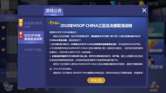 不过这也让棋牌游戏的方方面面曝光在了太阳底下。从2017年下半年开始,棋牌游戏就开始出现各种涉赌新闻,终于在2018年4月,网上传出了“即日起不得提供德州类游戏的下载,并于6月1日前全面终止德州类游戏的运营“的消息,直至今日,腾讯“天天德州”发布退市公告,从此之后,德州再无扑克。