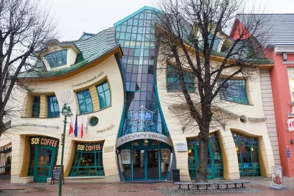 在索波特,有一座奇特的房子叫歪歪屋,其实是一家生意兴隆的购物中心,但现在已成了游人必打卡的景点。怪异的建筑造型看起来就像是在前面放了个超大的哈哈镜,莫名的萌~