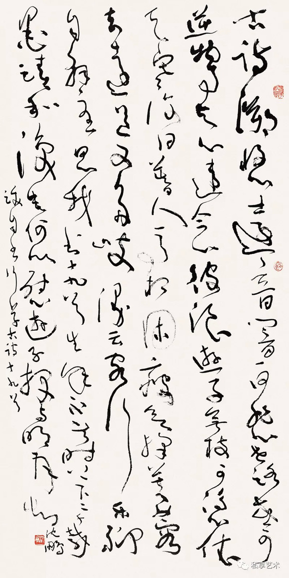 草书的变化多端,追本溯源仍在「一画」。把笔法置于书法艺术的首位,并不贬低结体的重要性。然而结体的价值,只有在笔法的主导下才得以充分发挥。