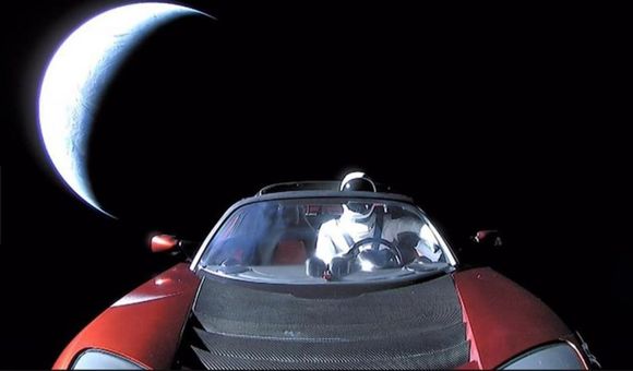 伊隆·马斯克(Elon Musk)的特斯拉跑车伴随着大卫 鲍伊的Space Oddity漫游太空,无垠的大地尽在特斯拉跑车的窗外,银河闪烁。