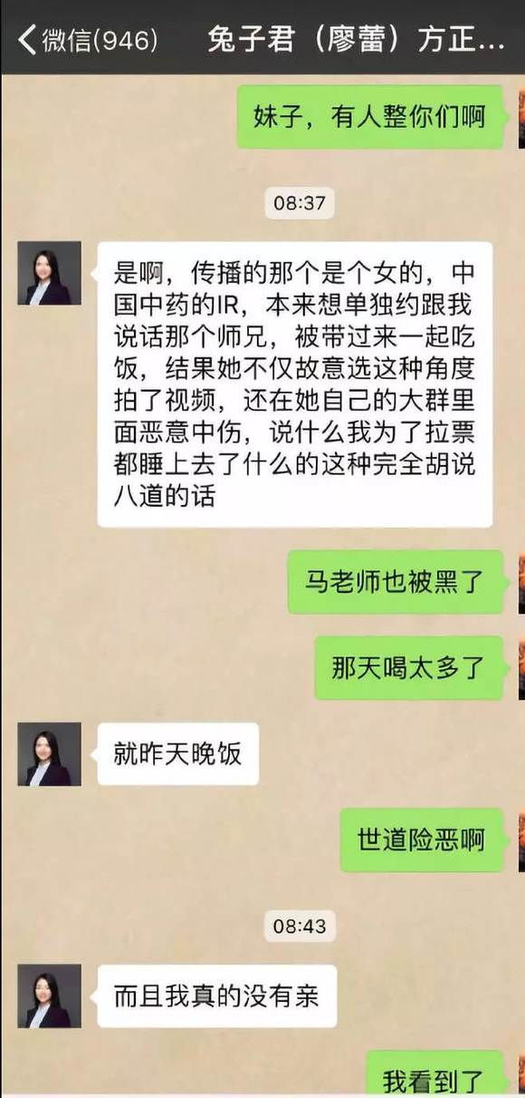 根据网传的文件,马军和廖蕾所在的方正证券也对两人进行停职处分和启动专项调查。