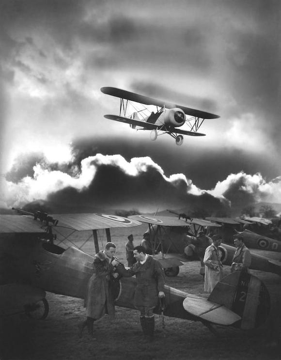 在一战初开之时,飞行员们更喜欢单打独斗,不过,在交战或者拍摄当中,要射击,要拍摄或驾驶,他们都必须要有真正灵巧过人的手腕。于是,他们往往都是经验丰富之士,是发明家,如罗兰·卡洛斯(Roland Garros,1918年阵亡)发明了一个系统,利用一层特殊的防护板,让他可以从螺旋桨的中心发射机枪,而不会把螺旋桨损坏;或者如欧米尔·拉克利尔(Omer Locklear),他是“空军”的一员,曾经攀爬到一架飞行中的飞机的机翼上,以此来证明机翼可以承受一架机枪的重量,因而声名大噪。从1919年起,他在好莱坞开始了特技飞行的生涯,而罗兰·杜坦(Roland Toutain)在法国也同样如此,他在雷诺阿的《游戏规则》一片中扮演了一名情怀错结的飞行员;此外还有霍华德·霍克斯(Howard Hawks),身为一名前飞行战斗员,在1930年,由霍华德·休斯出资,根据他的回忆拍摄了《拂晓侦察》(The Dawn Patrol)一片。