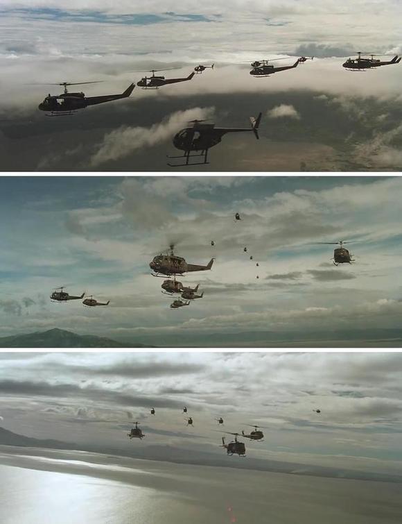 “我驾机向着中心直冲下去,而人群恰像一朵正在开放的玫瑰那样分散开来⋯⋯”墨索里尼的儿子关于埃塞俄比亚战争(1935-1936年)的这番描述充满了电影的场景感。类似的梦幻般的影象也在科波拉的电影《现代启示录》中得到了再现,在古典音乐的伴奏中,战斗直升机在天空中排着队形上演了一场芭蕾……