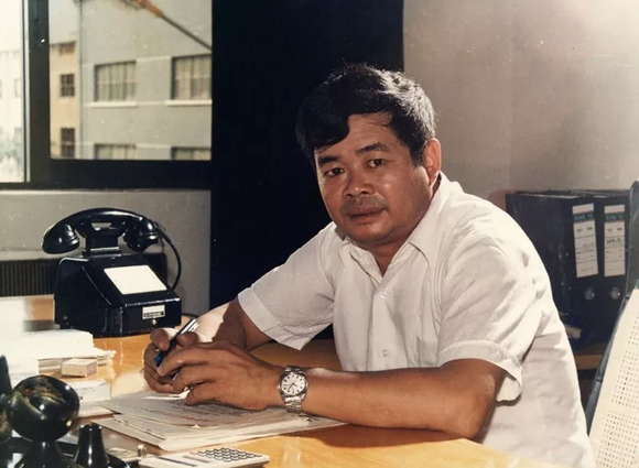 ▲ 1988 年夏天,曹德旺在办公室留影,桌上的摇号电话记录着时代的变迁