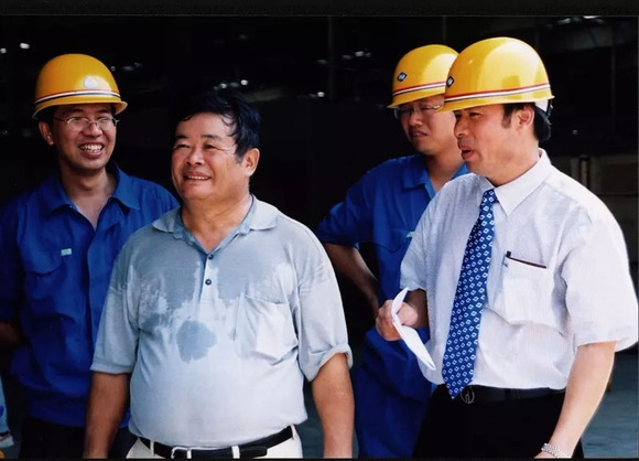 ▲ 2002 年,曹德旺在福清福耀集团总部施工现场