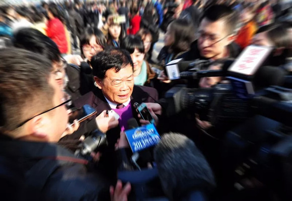 ▲ 曹德旺作为全国政协委员参加全国两会,接受媒体采访