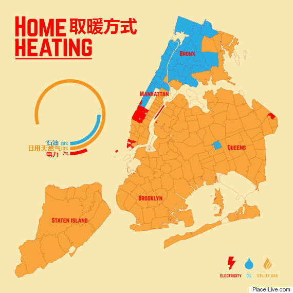 绝大多数的纽约家庭使用日用天然气取暖。