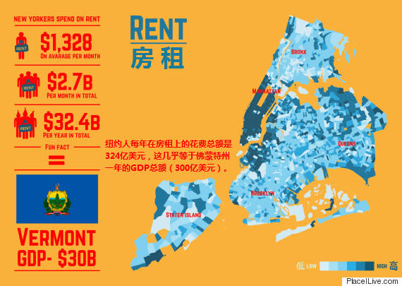 一个有趣的真相是,纽约人每年房租花费总额是324亿美元,这几乎等于佛蒙特州一年的GDP总额(300亿美元)。