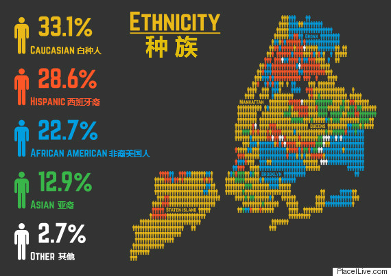 纽约市由布朗克斯区(The Bronx)、布鲁克林区(Brooklyn)、曼哈顿区(Manhattan)、皇后区(Queens)和斯塔滕岛区(Staten Island)五个区组成。面对人口庞大、社区和种族多样化的纽约,很难体会什么是这座城市真正的样子。也许下面这一系列地图能为这个问题提供参考。