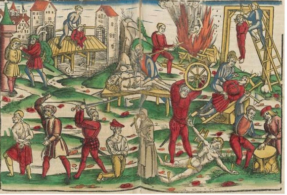 《欧洲死刑史》一书作者、德国历史学者彼得·舒斯特认为,死刑在欧洲有着悠久而血腥的历史。直到19世纪,死刑行刑均为公开活动。“从这一层面来说,死刑一直都不只是一个司法问题,它也是统治的象征,是清洗、报复、恐吓,是血淋淋的轰动事件,也是对被惩罚的罪犯和罪人的‘一种宗教或类宗教的惩罚,是其通往拯救之路的前路’。”除了呈现列举历史上死刑方式和相关法律的变化,舒斯特在书中着重分析了欧洲历史上教会对死刑犯的影响。他在前言中写到,教会“不只局限于担心这些人的心灵能否得到拯救,它也延伸到了死刑条例的颁布、行刑仪制的制定及其合法化等”。舒斯特说,“在过去的25年中,发生了无数恐怖事件,再次证明了‘宗教和暴力是同胞兄妹’这一观点的正确性。从苏联解体、弗朗西斯·福山(Francis Fukuyama)宣告‘历史的终结’以来,我们可以看到,战争、刺杀、恐怖袭击及种族驱逐是如何打着宗教的旗号来进行的。这让我们意识到,我们应该再次关注宗教和教会在历史上是如何对世俗之事施加影响的。”