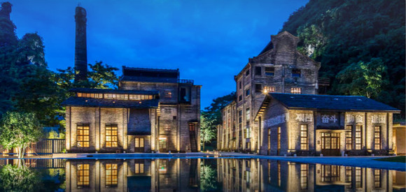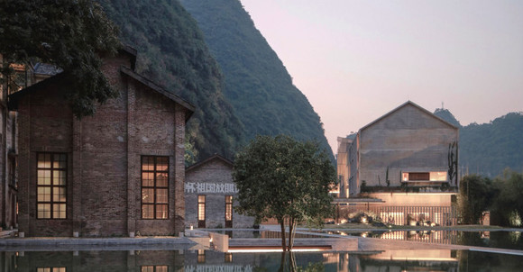 在有着喀斯特地貌的山丘和蜿蜒曲折的河流之间,由直向建筑设计师董功和水平线室内设计师琚宾操刀设计,既保护了旧糖厂的工业遗产,将其作为餐厅、咖啡厅等场所,又在其旁增添了客房,融入了不少个性化色彩。