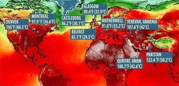 今年夏天,极端高温天气席卷全球,世界地图上全是代表高温的红色。