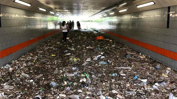 没错!人类丢给海洋的垃圾,再一次被“山竹”送了回来。