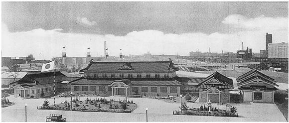 日本方面早已做好了充分准备,既然无法大张旗鼓地吆喝,就在无声的展览和陈设上下功夫,以达到宣传效果。按照大会主办方的要求,每个参展国应在指定区域内修建场馆,并自行决定展陈内容。对此,日本进行了精心的设计,建筑样式、位置以及展品的选择和摆放都传递着明确的政治含义。
