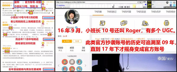 例如上图点评中出现性别矛盾的官方抄袭账号之一——问答小班长10号,在去年之前还不是官方账号,名曰“Roger”,其用户活动可以追溯回2009年。