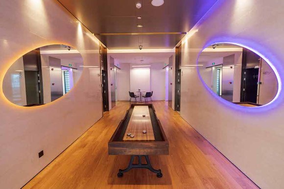 工作得累了想四处转转,可以去打打桌上冰球,社区走廊上摆放着WeWork在全中国做的第一个冰球桌,供会员玩耍。