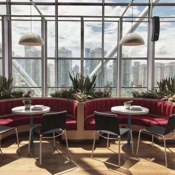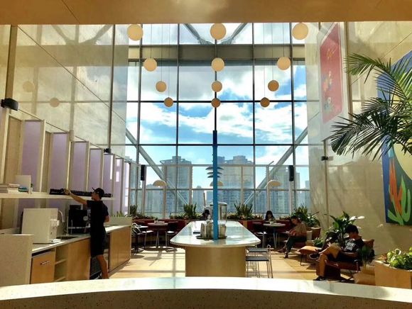 和其他WeWork社区一样,深圳这家新店提供移动工位、固定工位和独立办公室,每月的价格在2000-3000元不等。移动工位比较像大学图书馆,座位先到先得。
