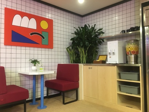 走进这个社区,会看到墙上有着一幅幅带有抽象色彩的壁画,画的都是上个世纪七八十年代的物品,比如小霸王学习机、喝水的搪瓷缸。因为今年正好是改革开放40周年,深圳又是改革开放的窗口,所以WeWork的设计团队就为深圳创作了这些带有怀旧气息的画。