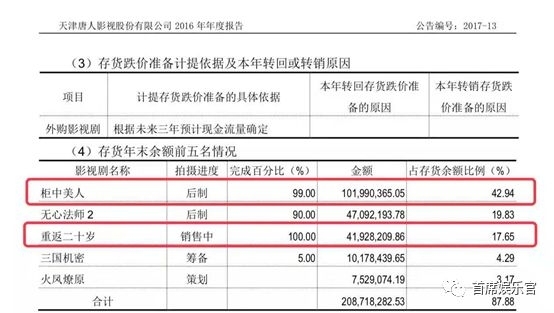 综合唐人往年披露的定期年报,2018年唐人已上线的剧集《三国机密》《柜中美人》《重返二十岁》投资成本合计约3.44亿元。其中,《三国机密》在2017年已经确认大部分收入,仅《柜中美人》和《重返二十岁》两部剧的成本已高达1.44亿元。
