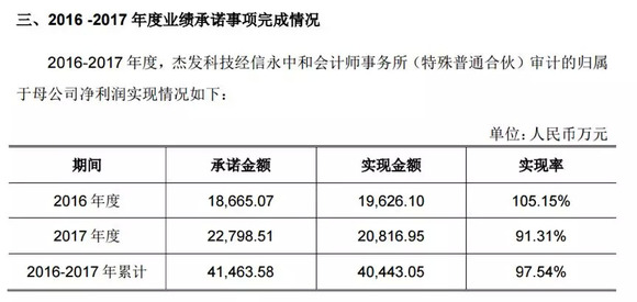 不过,杰发科技2017年业绩未达预期,实现率为91.31%,但相关商誉未计提减值。以下为公司公告中披露的杰发科技业绩完成情况: