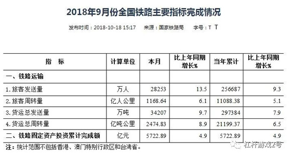 图4.2018年9月份全国铁路主要指标完成情况 图表来源|国家铁路局