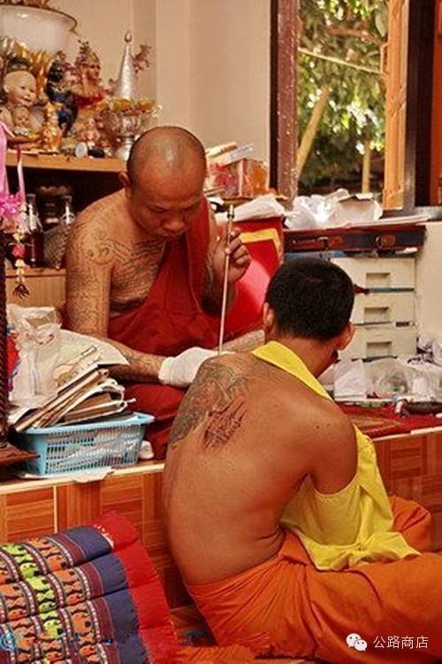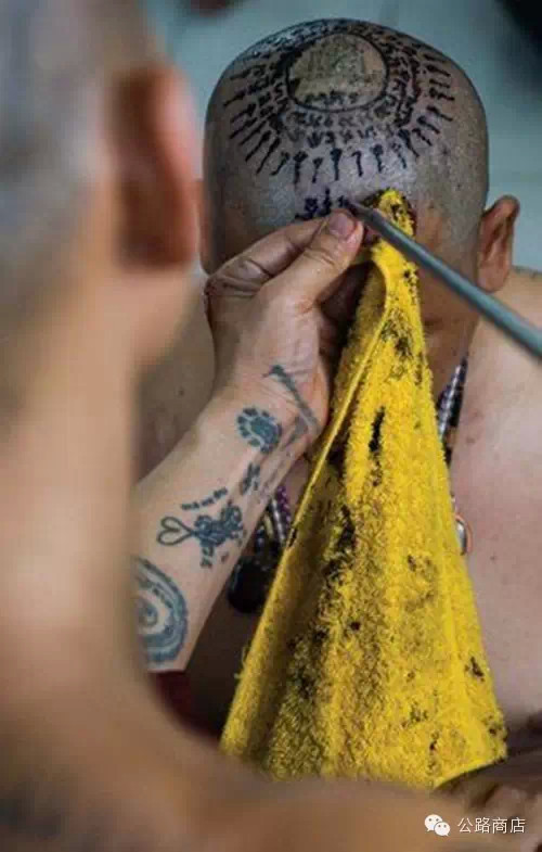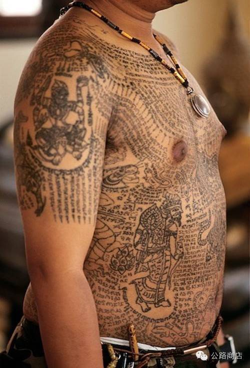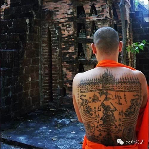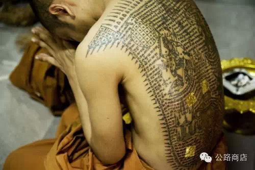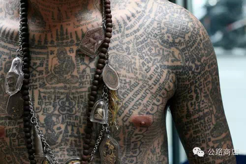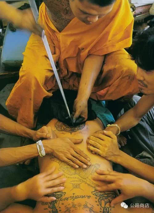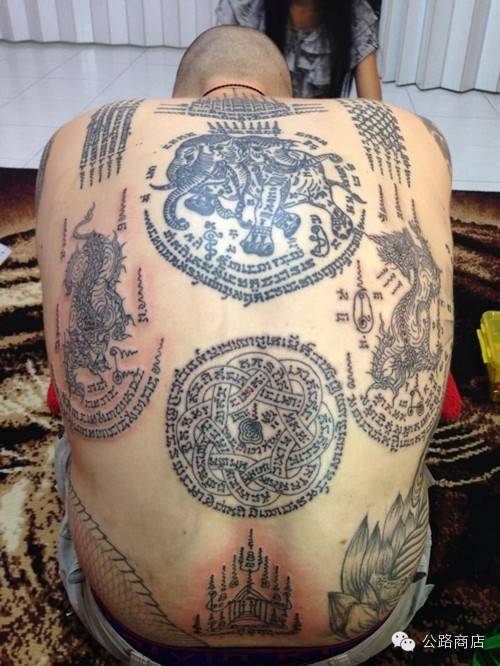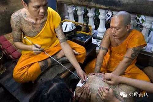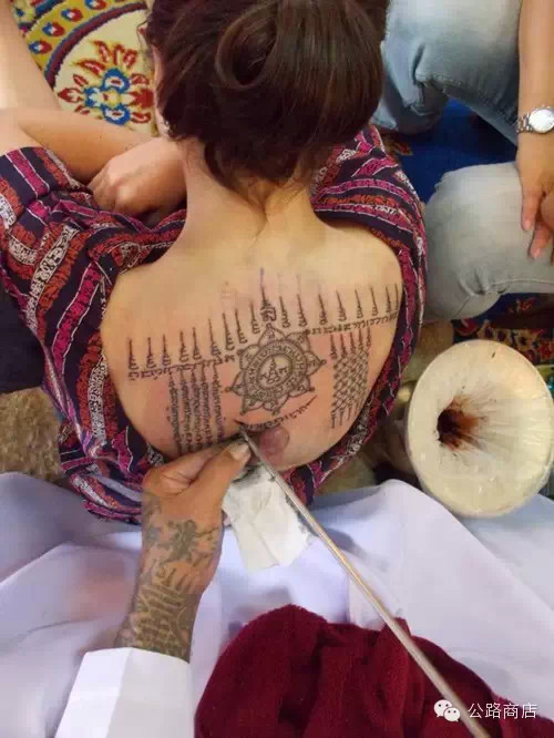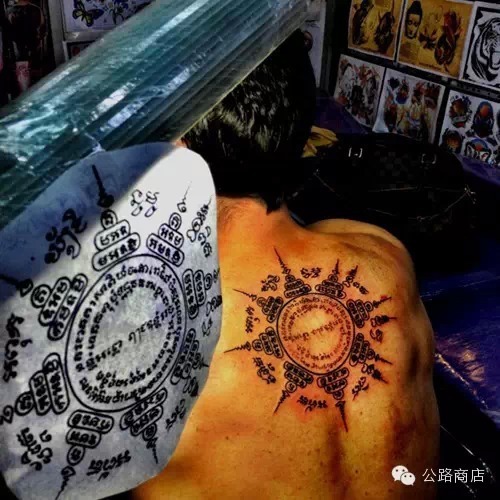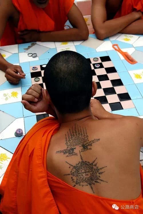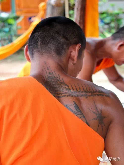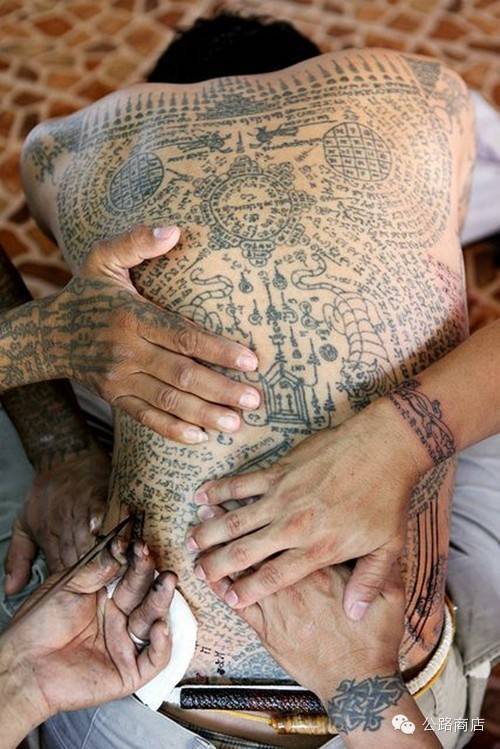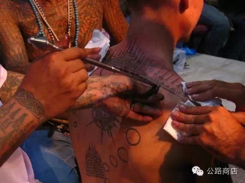 泰国刺符是一种和尚开光的外挂,据说士兵打仗的时候有种娱乐方式是扯佛牌,就跟撕名牌是一个意思,扯下来泰国人就蒙了感觉佛祖离他而去,但自从五百年大师们前用神油把符刺到士兵身体里,敌人就抠不下来了。