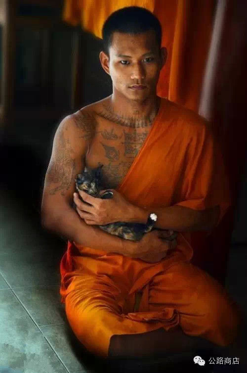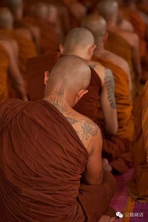 泰国僧人自己身上的赐福以智慧、祈福、经文为主,但飞到泰国刺符的朋友们似乎并不在意这些,都怀抱着一块皮换财运刀枪不入的梦想,执着程度远甚于过肩带鱼与抱腿河鲤爱好者。