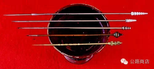 刺符用的手针,细长的针杆使刺的过程成为一种手艺乃至艺术,针柄端装饰精巧的佛塔、神像或金刚杵,也有部分地区使用削尖竹针。