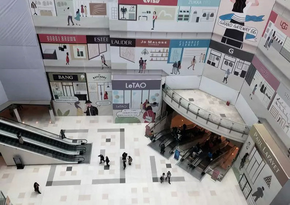 项目外立面的改造则是拆除原本封闭的墙面,大面积采用玻璃幕墙,不仅为街铺提供了十分醒目的广告价值,更使项目外立面更为现代化,在徐家汇商圈中充满视觉冲击力,达成“吸睛”目的,进一步提升人气,以及租金。