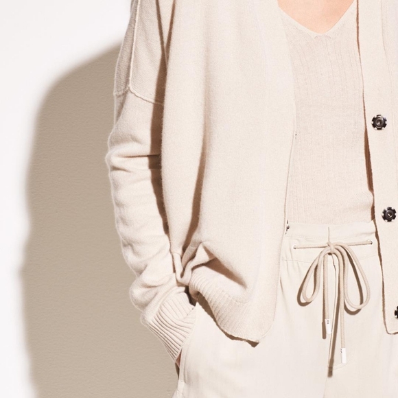 在轻奢品牌里,羊绒衣物做得最出色的是美国品牌Vince。品牌很年轻,从创立到现在只有15年。刚刚成立的时候,两位创始人认为品牌的定位不是设计风格,而是衣服本身,所以,他们决定采用奢侈品牌才会用到的优质面料生产一些休闲的基本款,比如说羊绒衫、白衬衫、羊毛大衣裤等。质感高级的面料加上亲民的价格,市场很快就被打开了。