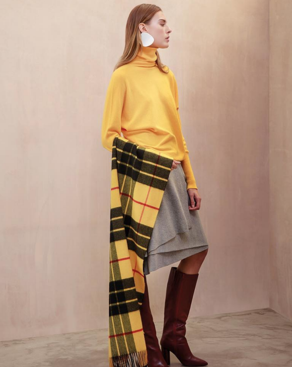 冬天,羊绒围巾也是不可或缺的单品。绒毛行业做过一项调查,在冬天的北京,20个人里面有11个人会戴围巾。英国本土品牌Johnstons of Elgin创立于1797年,以制作羊绒围巾出名,是“made in Scotland”的代名词,苏格兰格纹颇具英伦风范。除了自产围巾之外,它还会给Chanel、Burberry、Hugo Boss等时尚品牌生产羊绒制品。