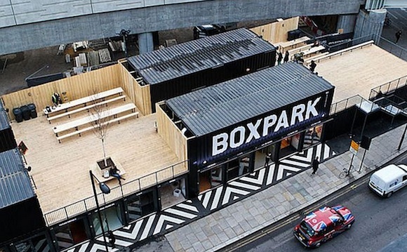 2011年创立的伦敦Boxpark购物区就是个好例子。这个由60个集装箱组成的建筑群从搭建、装修到开业只用了一年的时间,为创业初期的设计品牌们提供了与潮流大牌同场展示和销售的空间。