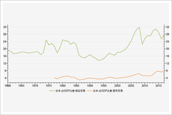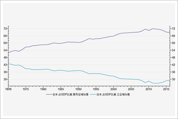 数据显示,自从2003年小泉内阁将“观光立国”定为国家战略以来,服务贸易在日本GDP中的占比不断提高,并扮演着越来越重要的角色。