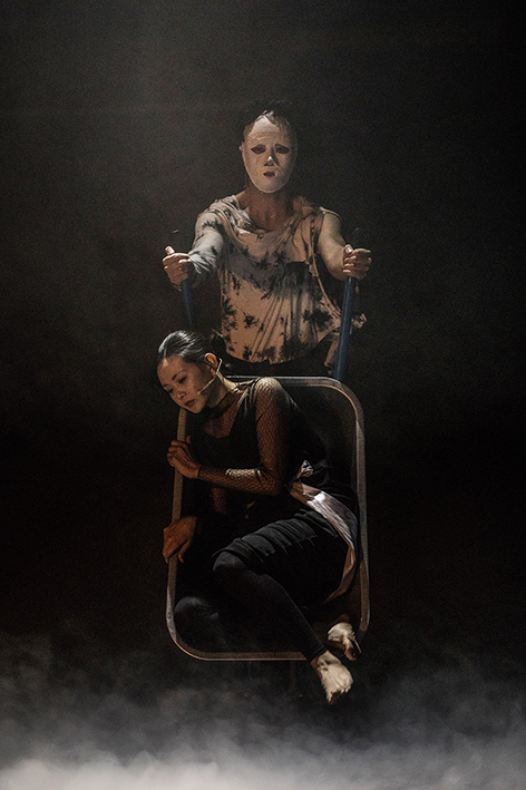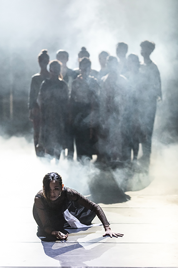 贯穿全戏的是,主演身边总有歌队围绕。“歌队”是古希腊悲剧中一种特殊的戏剧因素。它在剧中不以舞台的扮演角色出现,类似于现代戏剧的旁白,但是歌队的抒情和叙事功能却对戏剧的艺术表达和观众的审美需求有着重要的作用。导演米哈伊在《厄勒克特拉》的创作过程中说道,“歌队,定义了古希腊悲剧的特色乃至结构。歌队为悲剧注入了公众感、公共空间以及公共集体记忆。歌队成员神秘、不知来去,像敏感的乐器一样,与这个地方、这个时代悲痛的节奏共鸣。没有歌队,就没有古希腊悲剧。”
